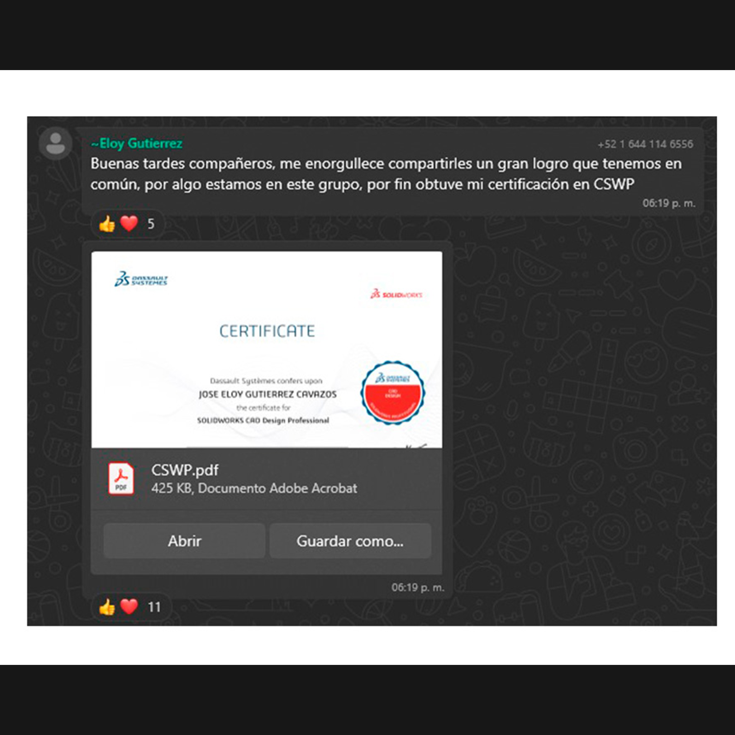 Contamos con la certificación como proveedores oficiales de certificaciones academicas de Solidworks